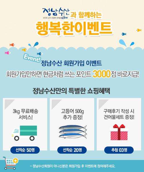 정남수산이 쇼핑몰을 오픈했습니다.